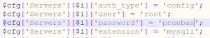 Después hay que modificar en el archivo config.inc.php para indicar la contraseña de root y cambiar: