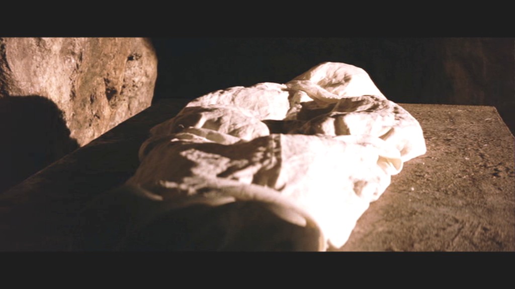 El estudio de la Sábana Santa ha permitido comprender muy bien esta escena. La imagen de la mortaja de Jesús es probablemente de origen radiactivo. Es decir, si el resultado es fotográfico (Ver APENDICE 1: La Santa Sábana de Turín) se debe a que es consecuencia de una muy fuerte radiación luminosa o térmica (o ambas cosas) pero de duración infinitesimal. Tal debió ser el efecto de la Resurrección de Nuestro Señor. Por esto el cuerpo debió desaparecer del interior de la Sábana, doblada y envolviendo, sin deshacerla. Debió ser algo sí como un fogonazo.