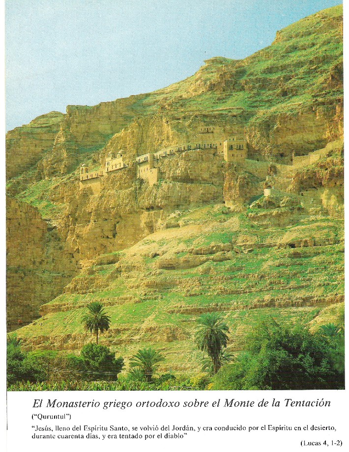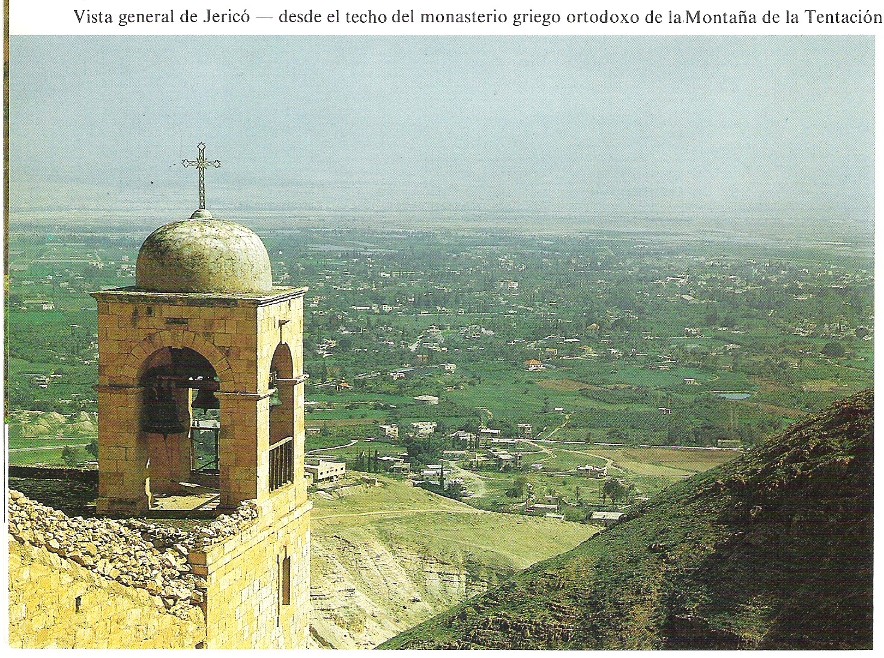 En Jericó, mirando hacia el Oeste hay una barrera montañosa desde la que se divisa no sólo la ciudad, sino todo el oasis en el que está edificada. Es conocida como el "Monte de la Tentación" y la tradición la identifica con el lugar, porque además de estar situada ya en el desierto, en dirección a Jerusalén, es fácil imaginarlo como el lugar en que el demonio dice "todo esto te daré..." No es que se vean "todos los reinos del mundo", pero la visión del oasis y la ciudad, que en tiempos de Herodes fue grande y rica, puede dar perfectamente esta sensación.