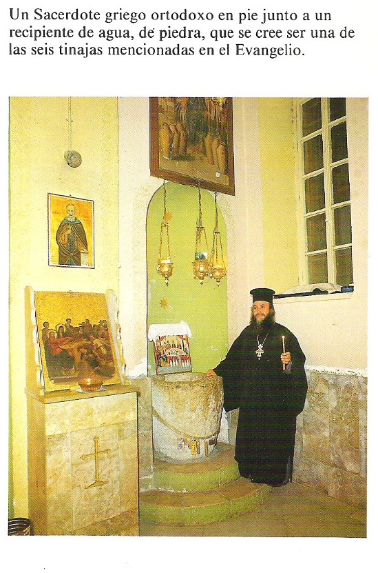 En Caná se conmemora el pasaje de las Bodas, en dos Capillas. Una de titularidad Católica y otra Ortodoxa. En ambas, los peregrinos casados suelen realizar, por devoción, la renovación del compromiso matrimonial. También hay en la Ortodoxa una tinaja de piedra, del tamaño y características de las que se describen en el Evangelio. Aunque se venera como tal, no hay constancia fidedigna de que fuera de las seis que se describen en el texto, pero da una idea de como debían ser.