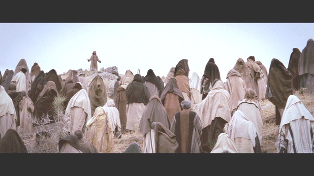 Vemos, como ilustración de este Sermón de la Montaña, dos fotogramas de la película "La pasión de Cristo" de Mel Gibson. Son imágenes de flash back, que se sitúan en un ambiente similar al descrito.
