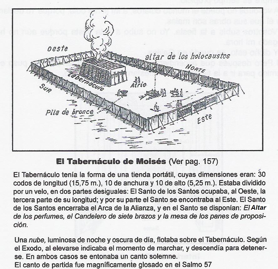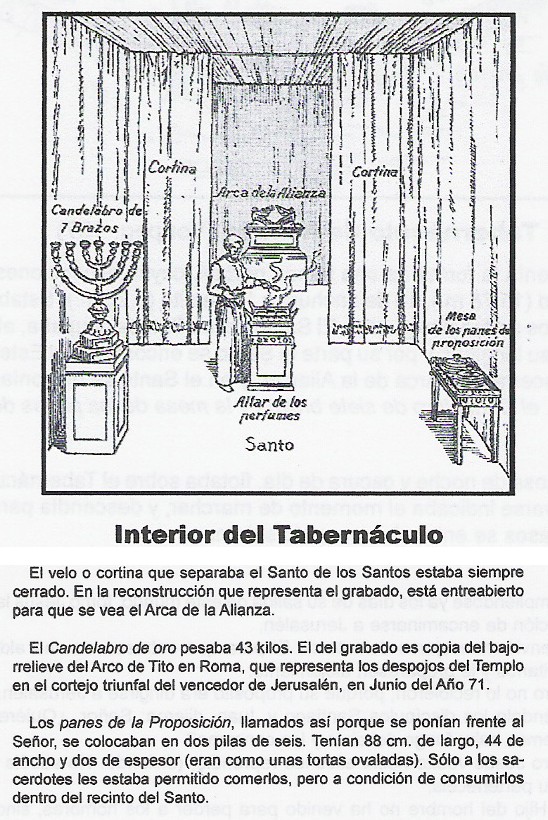 "La Fiesta de los Tabernáculos, recordaba los cuarenta años que los Judíos vivieron bajo tiendas en el desierto, antes de tomar posesión de la Tierra Prometida. Durante este tiempo, el Santo de los Santos estaba en una tienda grande o Tabernáculo (de ahí el uso de esta palabra, referida hoy al Santísimo Sacramento). De hecho, una vez el Rey David se instaló en Jerusalén, montó de forma estable dicho Tabernáculo en la explanada, en la que Salomón construyó después el primer Templo.