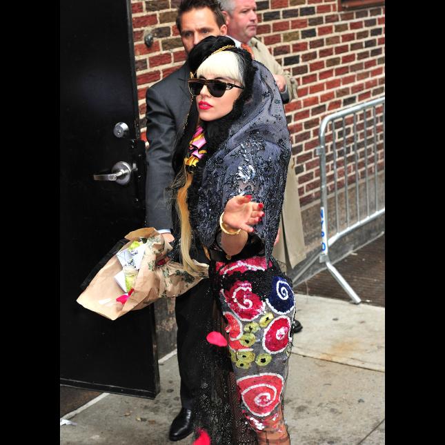 No debería sorprendernos ver a Lady Gaga con alguno de sus sorprendentes estilismos pero lo sigue haciendo. Amiga como pocas de las redecillas, el cuero, las plataformas y en enseñar carne, éste fue el estilismo elegido para acudir a 'The Late Show with David Letterman'. Su media pierna pintada y la mantilla nos impactaron y mucho.